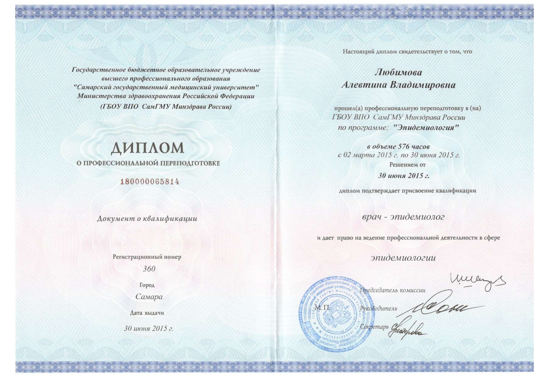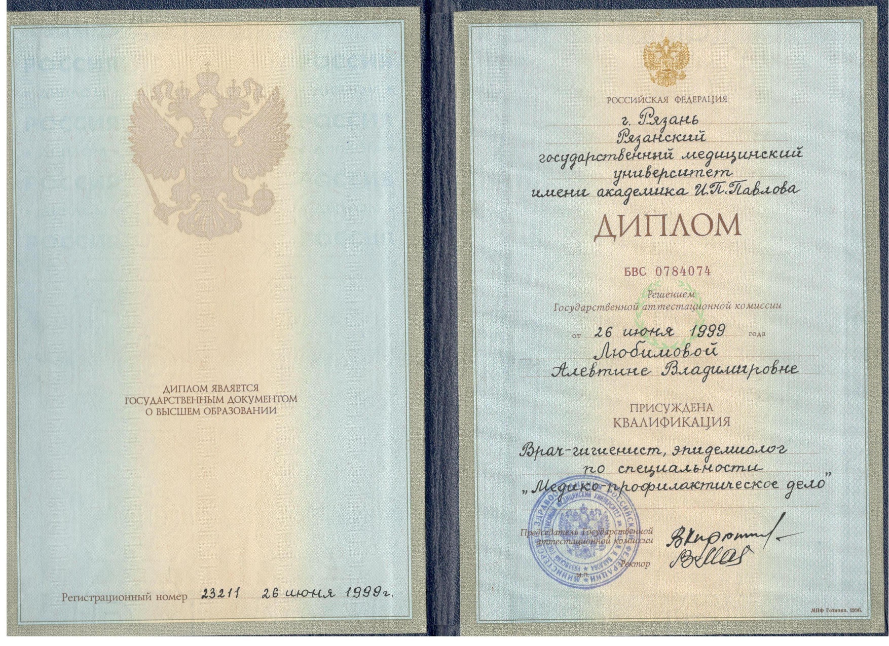 Алевтина Владимировна получила образование в Рязанском государственном медицинском университете им. акад. И.П. Павлова, где ей была присвоена квалификация врача-гигиениста и эпидемиолога. Позднее она прошла интернатуру в области общей гигиены, профессиональную переподготовку и специализацию по эпидемиологии. Благодаря её профессионализму, чёткости и вниманию к деталям, пациенты могут быть уверены в полной безопасности и качестве оказываемой помощи, а команда врачей работает в комфортных и правильно организованных условиях.