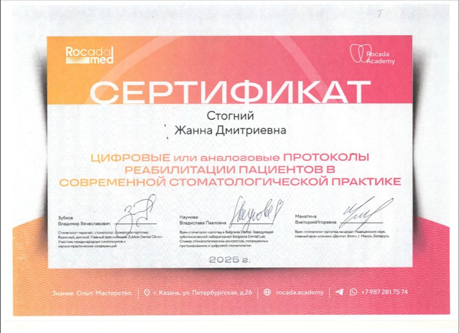 В своей работе Стогний Жанна Дмитриевна уделяет внимание не только медицинским аспектам лечения, но и психологическому комфорту ребёнка. Она умеет найти подход к каждому маленькому пациенту, снимая страх и тревогу, а также объясняет родителям все этапы лечения. Пациенты отмечают её доброжелательность, внимательность и аккуратность, благодаря чему визит к стоматологу проходит спокойно и безопасно.
